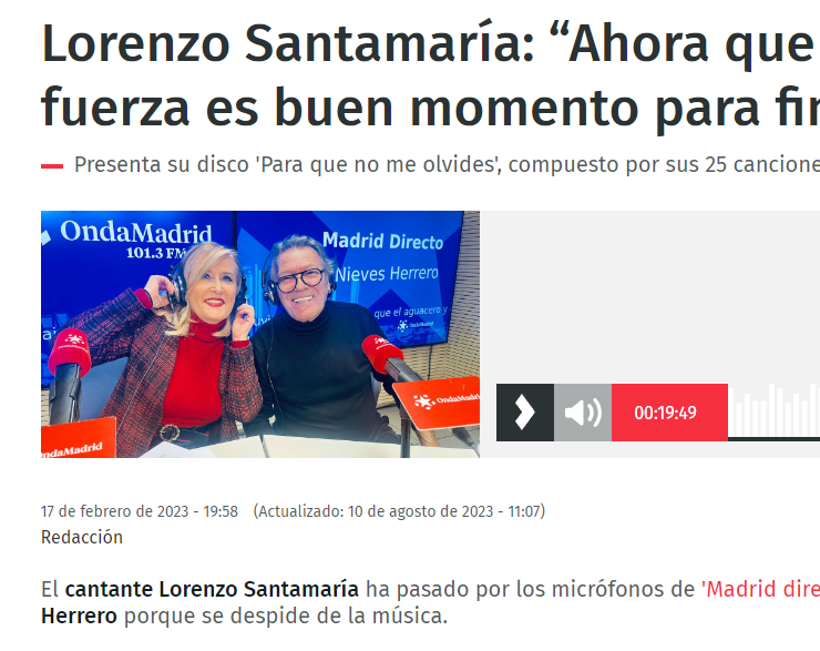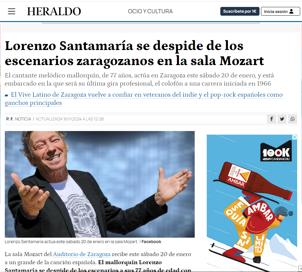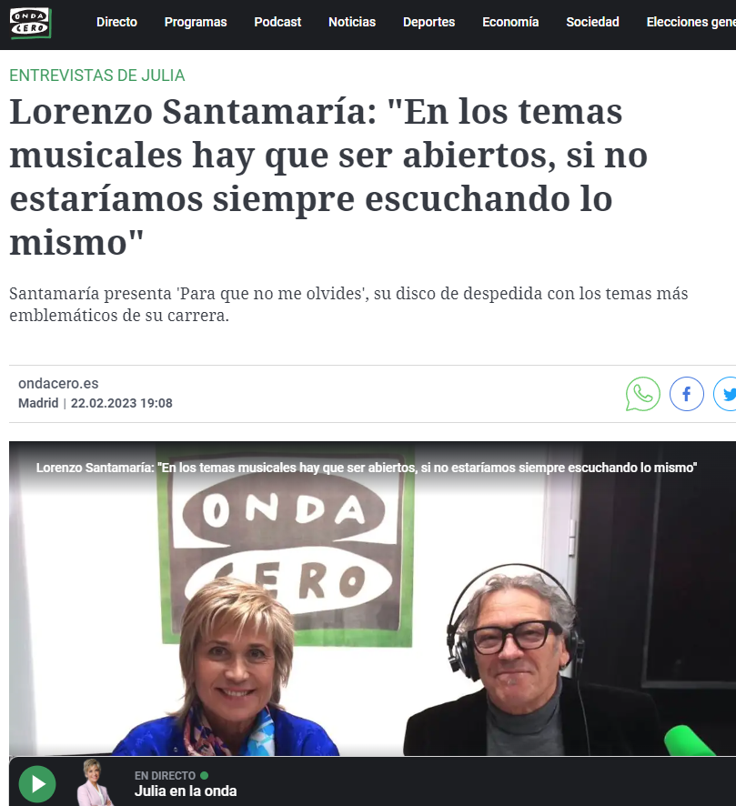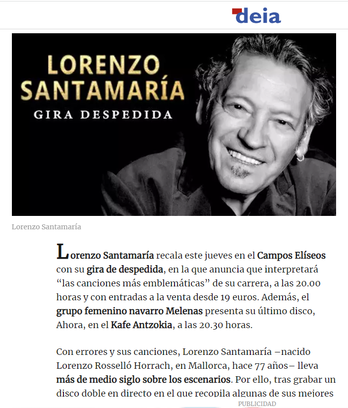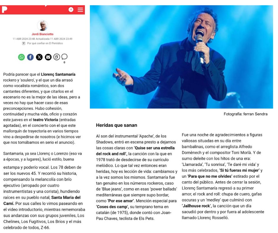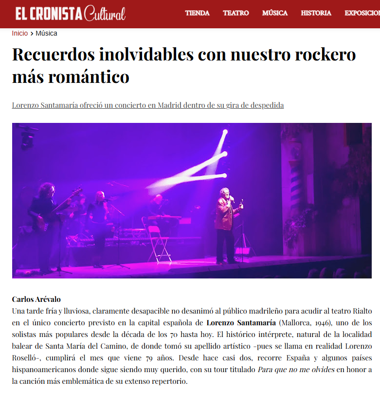 «Imagine a un millar de almas reunidas en una despedida, abducidas por la viñeta de un pasado que llevan marcado a fuego, como flotando en el líquido amniótico del recuerdo… Un recuerdo que Santamaría decanta sobre su repertorio tierno, cautivador y eterno; y al hacerlo le pone tanta pasión que parece temblarle el corazón en la garganta. Emocionante.»